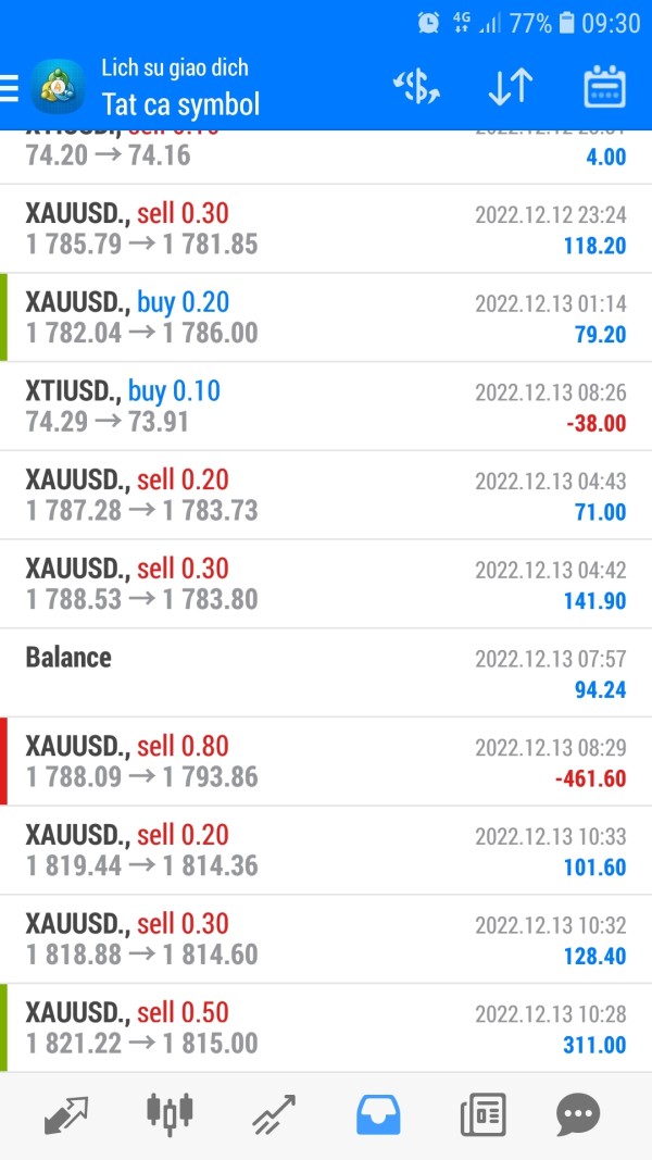 Tôi đặt lệnh buy vàng ngày 14/12/2022, sau khi kết thúc giao dịch đã có lời 1900 sud. Sau đó sàn trừ toàn bộ tiền lời và xóa mã giao dịch khỏi lịch sử