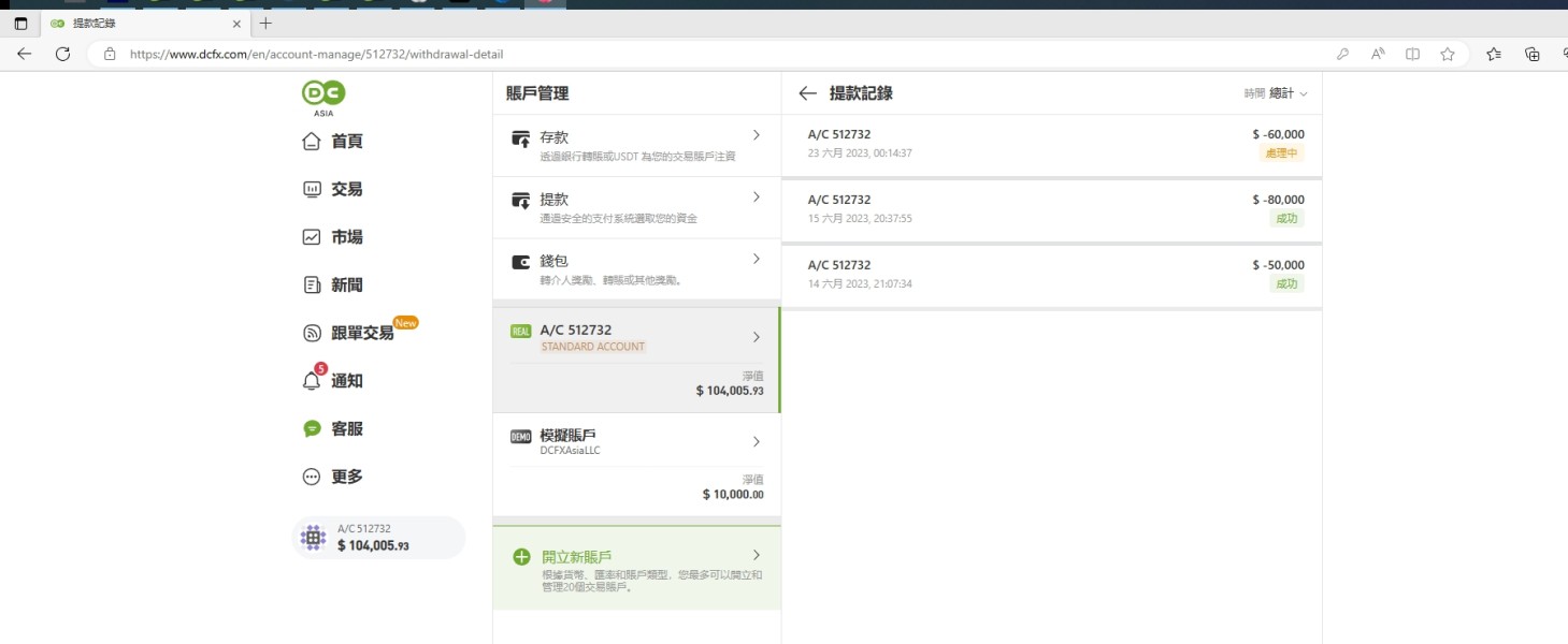 I tried to make a withdrawal of $60000 on 28 June from my DCFX account and my withdrawal still pending and never arrived. A legit broker will never take that long to process a withdrawal. It is a scammer.