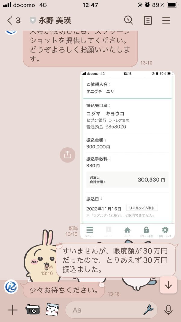 110万円振込しました。 全額返して欲しいです。 酷すぎます。