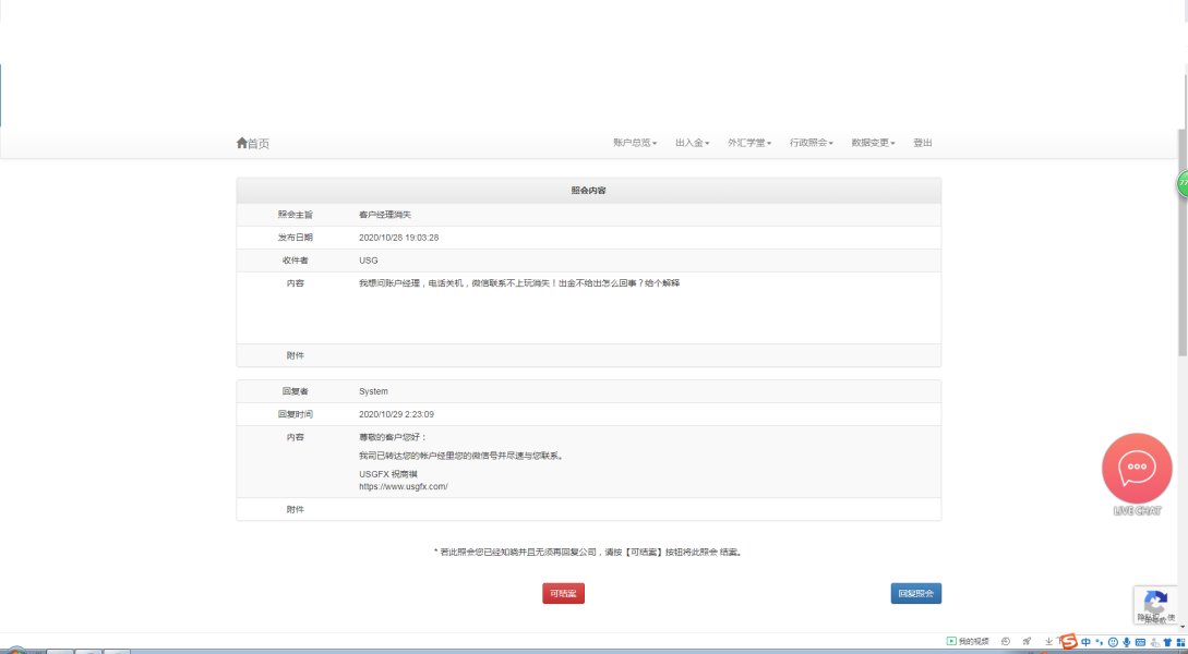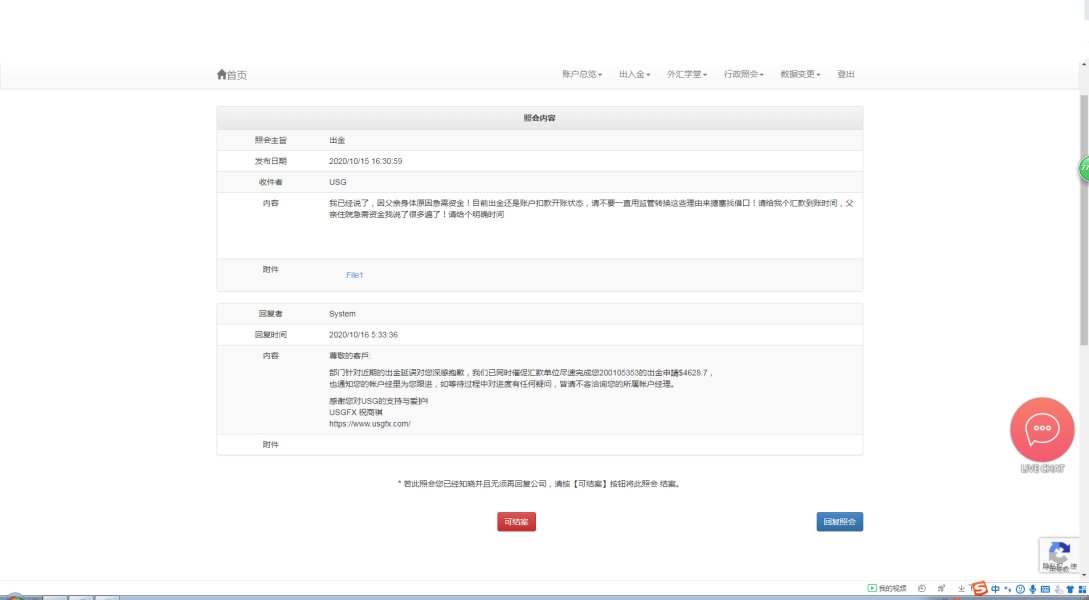 本人USG联准国际客户,USG联准国际不给出金!期间父亲因心脏搭桥手术需要手术住院,急需资金,无良USG联准国际各种推脱不给出金,我就想知道USG联准国际有没有良知,账户经理玩消失电话关机微信发消息不回,打微信电话不接!