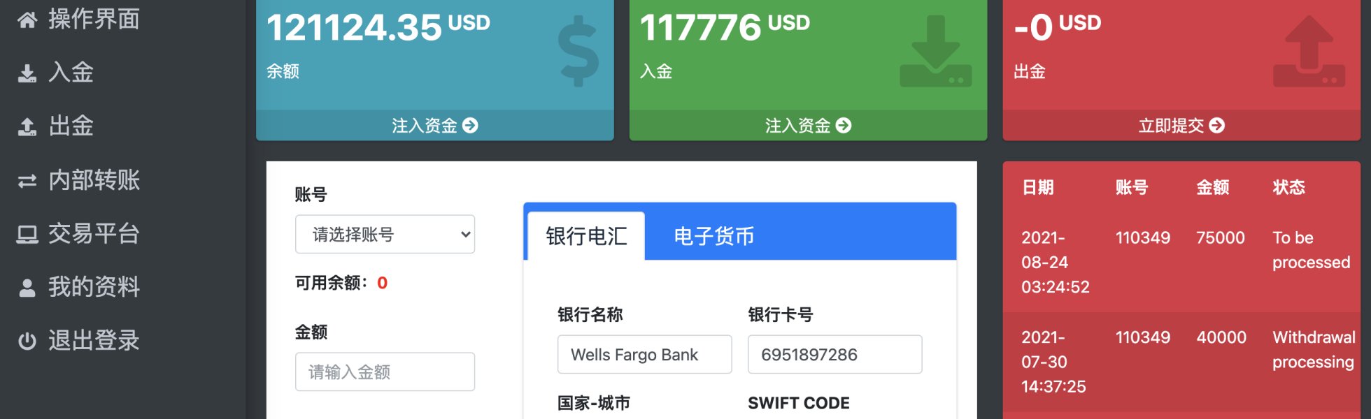 按照公司客服的要求,缴纳了1万美金的佣金和1万美金的保证金,等所有都缴纳后,客服不见了,出金也没有进展了,希望大伙都把眼睛擦亮了,千万别上当受骗了