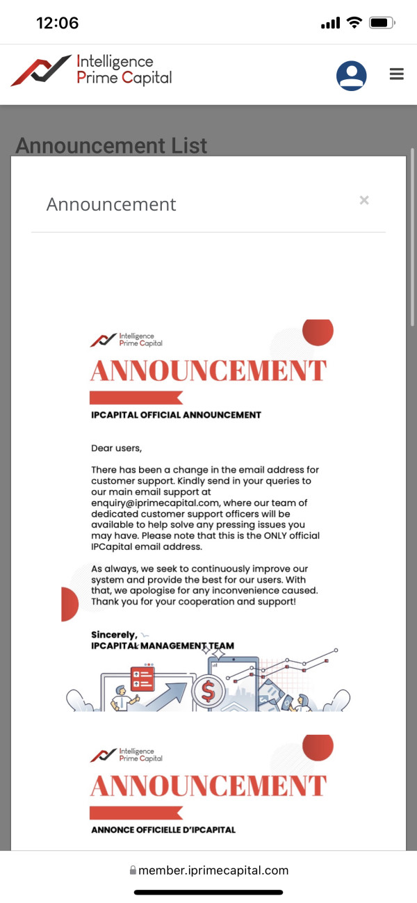 I entered IPC capital a few weeks ago with all the savings I had, and now coincidentally they say that they had a security problem and they withheld all the people's money. I did not make a single dollar of profit because they did not give me my profits. They stayed for them and my money is frozen, they transferred us to a supposed new BOT without authorization and now they force us to leave the capital for 100 days but they don't give us profits either, they don't let us withdraw capital and the profits are left to them, they are a fraud the email you gave us is not working
