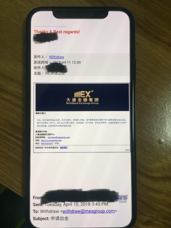 Платформа мошенничества MexGroup , в котором вывод не был получен в течение более 1 месяца.