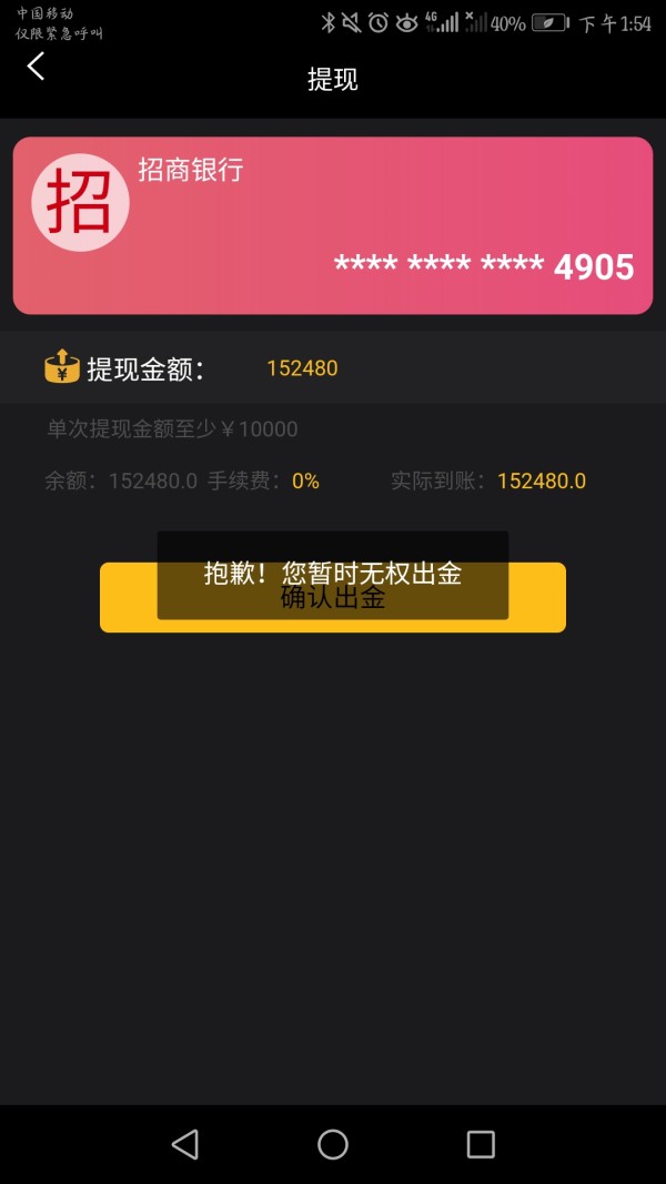 我通过一个据说做外汇的人下载了昆仑国际APP,然后让我入金,一起做外币,第一次一下子亏了,第二次赚回了,就想算了不做了,却告知银行户名错误,我看是自己银行卡输错一位就忍了,让我入金账户余额的40%方可修改信息,我就入了45000,结果告诉我修改后,要去出金时,又告诉我账户被冻结了,不让出金。解冻需要支付账户余额的30%,原来的余额+45000).30% =46000。不入金坚持不让我出金,没有其他方式解冻。最后客服直接不理人,问他如何联系领导或者官网也不告知