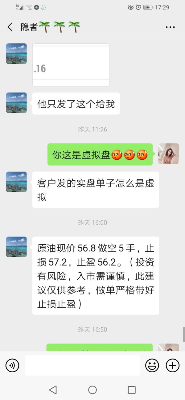 我们在微博上认识的喊单老师,想到久久外汇保证金低,资金利用率高,于是就入金两万美金,老师叫了两单挂单交易,挂的根本就不能进场的价格,晚上11点左右叫我们重仓反向单,导致差点爆仓,直接亏平,他是有意行为,操作第一单直接亏损8000美金,吃人不吐骨头,心狠手辣的久久外汇带单老师😂😂😂微信上的图片就是这些