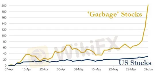 Возможно, из-за того, что он находится в зоне эпидемического карантина или из-за того, что правительство выпустило чрезвычайные выплаты, которые превышают обычную заработную плату, розничные инвесторы в акции США ранее «спекулировали» с акциями зарегистрированных на бирже компаний, которые объявили о банкротстве или были близки к банкротству, играя друг против друга в условиях высокого левериджа.