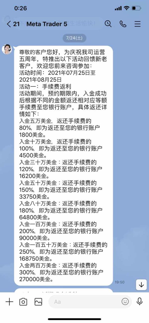 7月12日在网友劝说下在Sunton Capital公司先后通过日本银行帐户和中国银行账户入金45万人民币到MT5进行外汇交易; 7月24日平台发来活动信息,在网友的劝说下申请了公司的两个返现活动;但再次入金18万之后发现平台存在违法行为后停止入金,拒绝参加活动,并要求平台出金。但平台以申请返现活动期间为理由限制出金。期间多次和平台客服沟通要求撤销申请活动,并要求平台出示具体活动条款说明。但平台一直以我申请了就是签订合同为理由拒绝我的撤销申请,也一直没有拿出相关详细条款。 8月2号收到平台通知说我为按申请要求完成活动是违约行为。需要交易600手、15天后才能为我办理出金。8月16日我按要求完成600交易,再次要求出金。平台先是同意为我出金,需要1-3个工作日,但第二个工作日时突然对我说要我补交盈利税务后才能给我出金,并冻结了我的MY5帐号。 请求调解拿回钱,并举报Sunton Capital这家非法行为的公司。 我还有其他聊天转账记录,以及日本账户的汇款凭证。