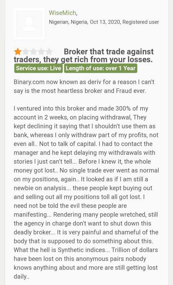 A client has alleged that binary.com did not allow him to withdraw after he made profit and instead, the broker did trade with the client's money,without his knowledge and all money got lost. The client has claimed this broker make profit from people's loss. He has requested regulating bodies to shut down this company, otherwise they would continue to scam people.