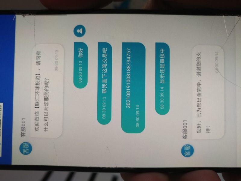 8月19号的出金,之前一直说是审核人数过多让等,今天问说已经出金完毕,反复就是这一句话。但app现实审核中,也没有收到出金到账!客服根本就是骗人的,他们除了客服没有任何联系方式,就是一个诈骗的黑平台,曝光出来,请大家以我为鉴,不要再被骗了