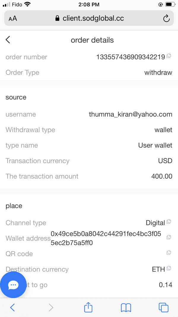 SOD is not letting me withdraw my funds and not responding to my communication. They have frozen my funds since 29 September 2021.