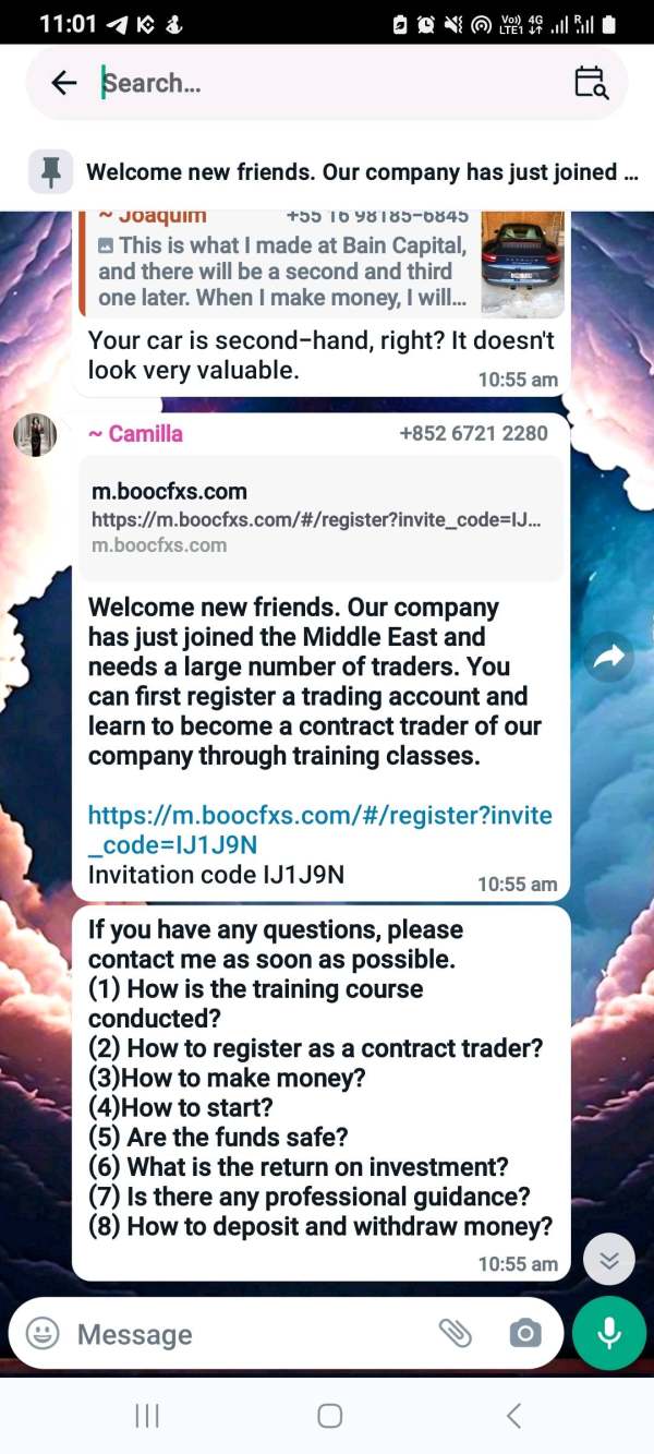 these boccfx is a scam broker, before they use boccfx, same people with different numbers, please now they use almost 10 different WhatsApp groups in different names like Bain investments. please stay away