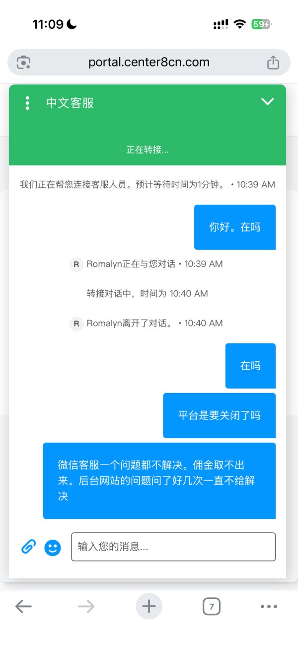 代理商后台网站看不到客户的具体信息。佣金就那么一直卡着不转。跟客服说了很多次也没解决。网站客服不回话