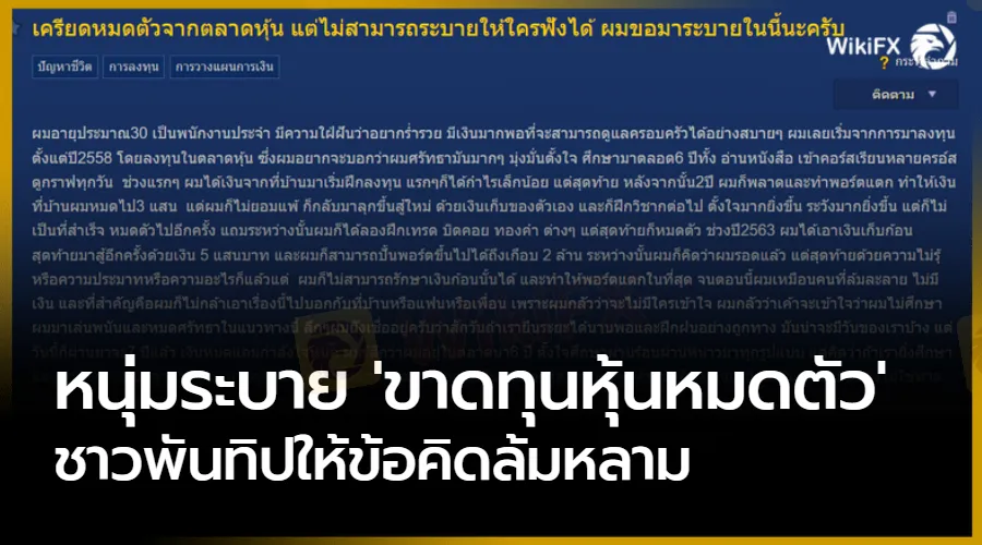 หนุ่มระบาย 'ลงทุนหุ้นหมดตัว เครียด' ชาวพันทิปให้ข้อคิดล้นหลาม