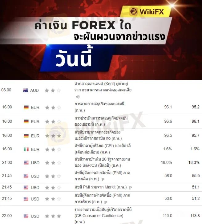 ตารางข่าว Forex ประจำวัน (22 กุมภาพันธ์ 2565)