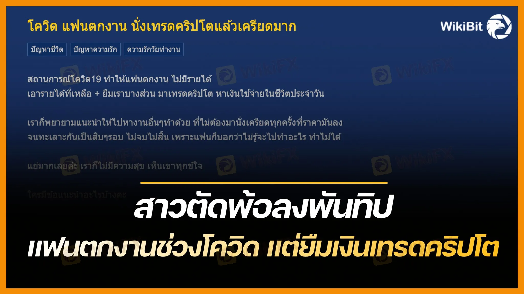 เรื่องราวที่เรานำมาเสนอวันนี้มาจากเว็บไซต์ชื่อดัง Pantip จากสมาชิกหมายเลข 1620674 ในวันที่ 19 สิงหาคม 2564 ได้เผยแพร่เรื่องราว “โควิด แฟนตกงาน นั่งเทรดคริปโตแล้วเครียดมาก” สถานการณ์โควิด19 ทำให้แฟนตกงาน ไม่มีรายได้ เอารายได้ที่เหลือ + ยืมเราบางส่วน มาเทรดคริปโต หาเงินใช้จ่ายในชีวิตประจำวัน เราก็พยายามแนะนำให้ไปหางานอื่นๆทำด้วย ที่ไม่ต้องมานั่งเครียด ทุกครั้งที่ราคามันลง จนทะเลาะกันเป็นสิบๆรอบ ไม่จบไม่สิ้น เพราะแฟนก็บอกว่าไม่รู้จะไปทำอะไร ทำไม่ได้แย่มากเลยค่ะ เราก็ไม่มีความสุข เห็นเขาทุกข์ใจ ใครมีข้อแนะนำอะไรบ้างคะ