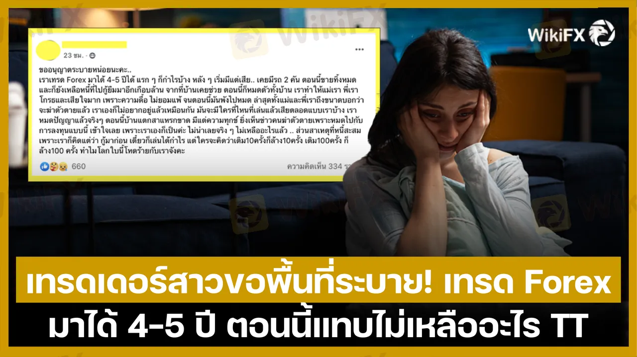 บทคัดย่อ:เทรดเดอร์สาวขอพื้นที่ระบาย ! เทรด Forex มาได้ 4-5 ปี ตอนนี้แทบไม่เหลืออะไร TT
