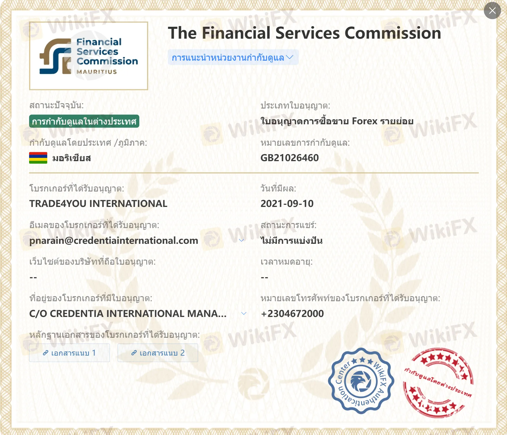 Markets4you เป็นโบรกเกอร์ที่มีการกำกับดูแลจากต่างประเทศ ก่อตั้งในปี 2007 โดยมีสำนักงานใหญ่ในหมู่เกาะบริติชเวอร์จิน โบรกเกอร์นี้ได้รับการกำกับดูแลจาก Financial Services Commission (FSC) ของมอริเชียสและหมู่เกาะบริติชเวอร์จิน ซึ่งเป็นเขตอำนาจที่มีการกำกับดูแลจากต่างประเทศ แม้จะมีการกำกับดูแลบางระดับ แต่ไม่สามารถให้การคุ้มครองนักลงทุนในระดับเดียวกับโบรกเกอร์ที่ได้รับการกำกับดูแลจากเขตอำนาจที่มีความมั่นคงมากกว่า ดังนั้นนักลงทุนควรระมัดระวังเมื่อทำการซื้อขายกับโบรกเกอร์ที่ได้รับการกำกับดูแลจากต่างประเทศ