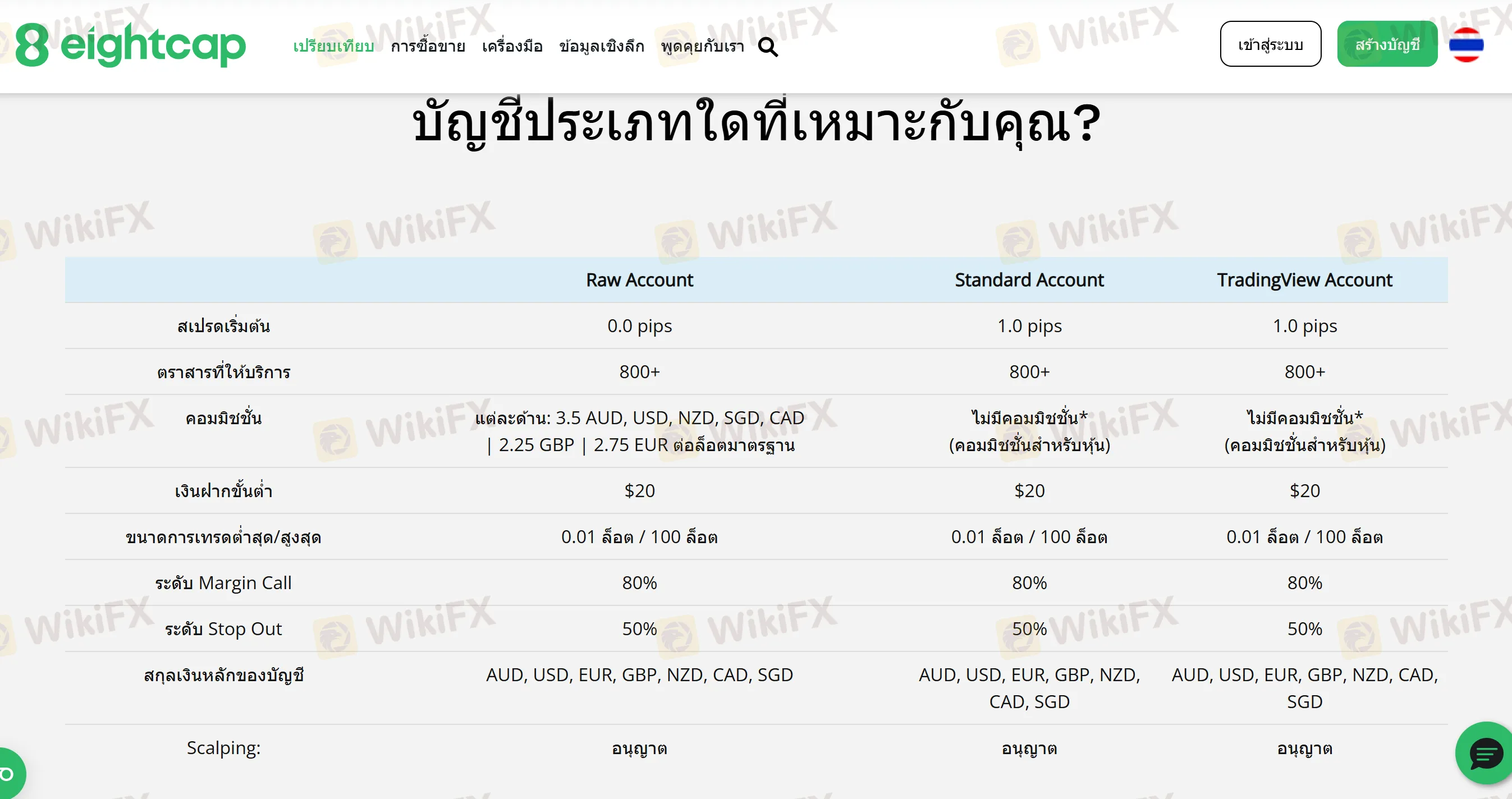 Eightcap บัญชี: เปรียบเทียบบัญชี Standard และ Raw พร้อมต้นทุน
