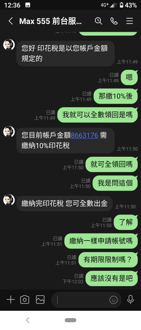 投入的資金1330000加上穫利總計:8400000要出金要繳保證金44萬元!繳納後又不能出金;又要繳84萬元的印花稅、百般叼難!最後竟然鎖住我的戶頭!非常可惡!