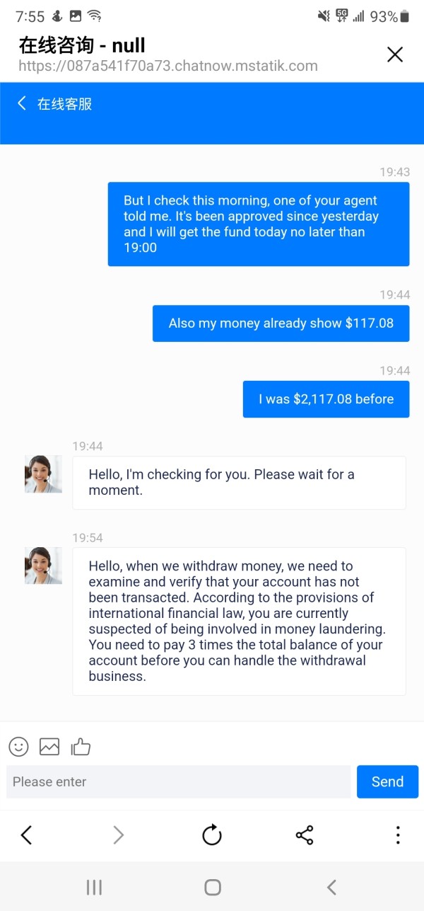 要求出金,称你涉嫌洗钱,要另外存款自证