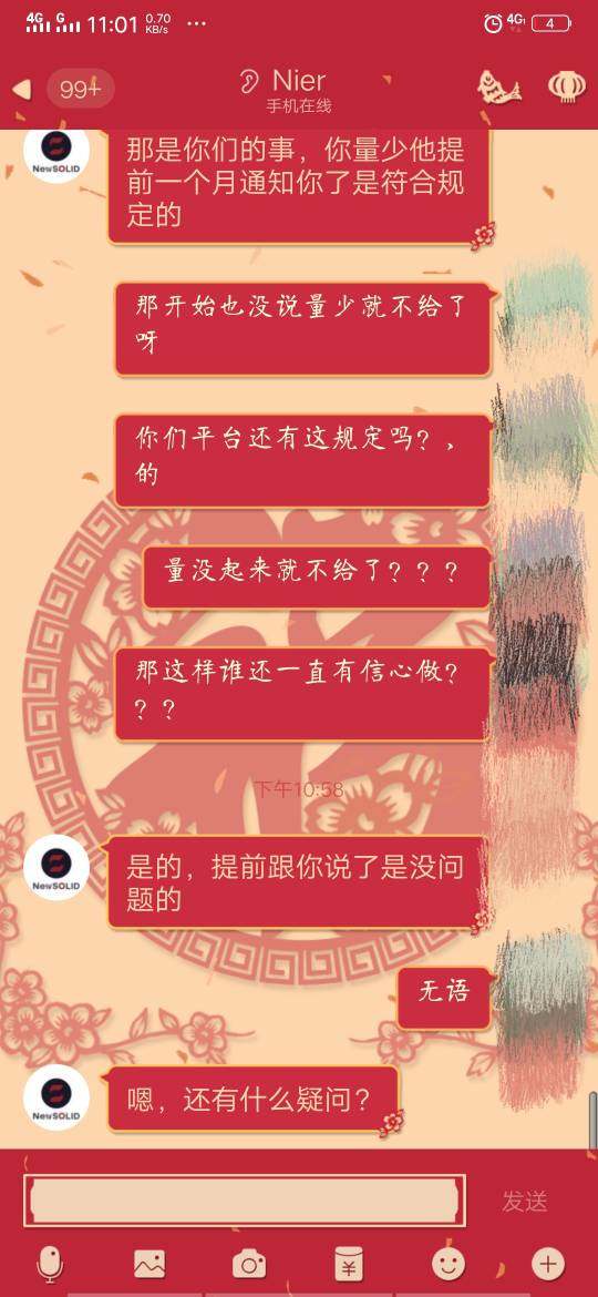 开始说给内返,客户进去了就说内返没了,嫌手数少,取消了,投诉客服说提前告知合情合理,明明就是在骗人,还说的这么振振有词!!