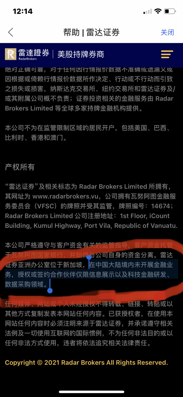 雷达证券所谓的美国持牌券商 其实就是欺骗 请看下文