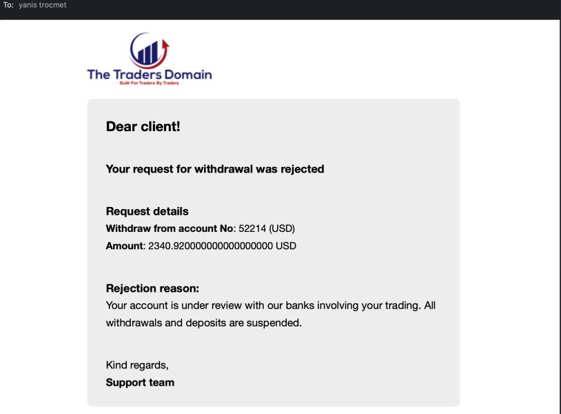 I was operating on this company for almost a month when they blocked my funds and my account.I tried to withdraw my winnings and they didn't authorize it. when i asked for an explanation, they didn't even reply to my emails.The Traders Domain isnt a regulated broker and as i could see dont have a reputation. Blocked my account when i request my withdrawal, dont reply any emails when i request the proofs, they blocked my email so i couldnt reply them. UNPROFESSIONALS.Following all the images and proofs about it. request the FPA help on my case when i tried to talk with the company via emails, live chat and they didnt even try to help me or solve my matter.Thank you.