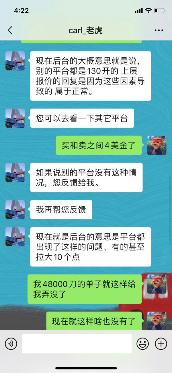 恶意拉大点差爆客户仓,点差达到400点,四美金之多!客服不理睬,平台要客户自己承担所有损失