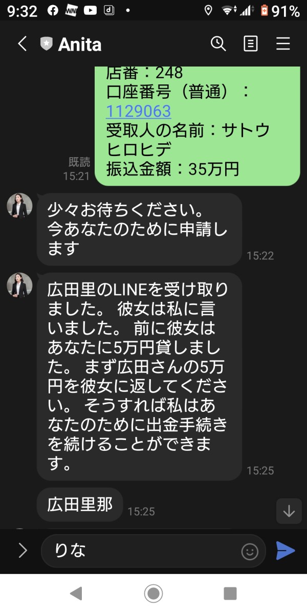 元本が足りず、私が一万円、紹介者(廣田里那)が五万出資してくれたが、いざ出金しようとしたら、マネージャーが出金しようとすると紹介者に返金しないと出金できないと、いれ、出金できない、また紹介者とマネージャーが師弟関係だった。