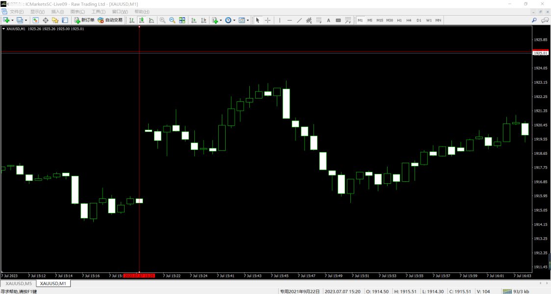 IC Markets SC-Live 09 服务器 2023年7月7日非农缺失的K线 多少人因为这个爆仓了!!!时间2023年7月7日15:25-15:41