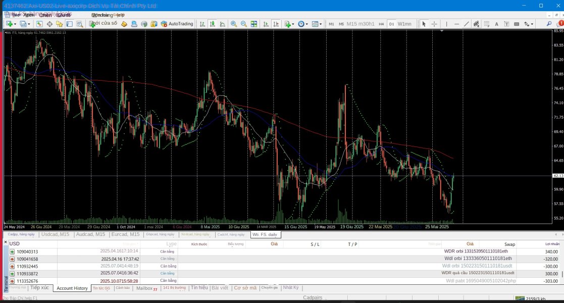 Ở cặp thứ hai, giá cũng đổi chiều trước khi các lệnh bị đóng.