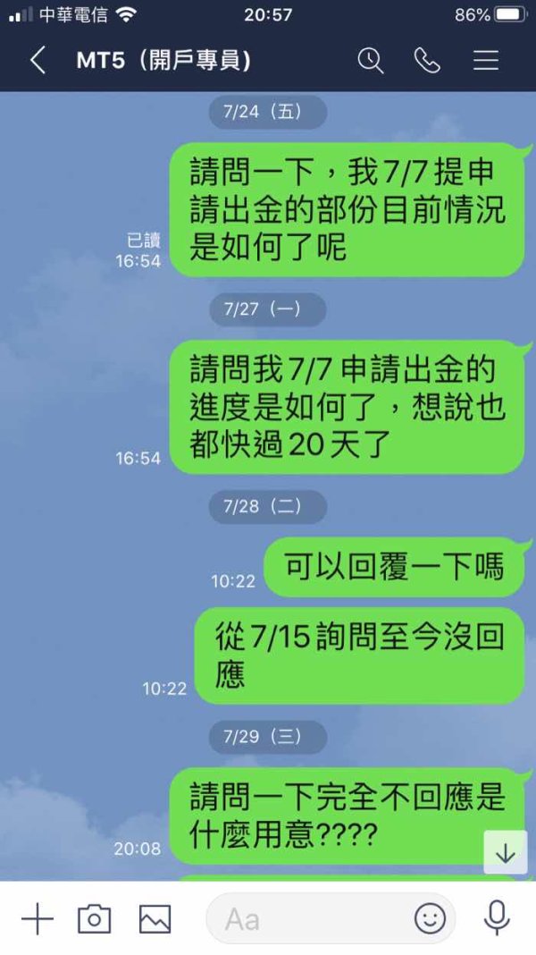7/7在該平台申請出金,一直未收到後詢問Line客服也只給你已讀不回最後再封鎖你,請各位別想不開使用該平台