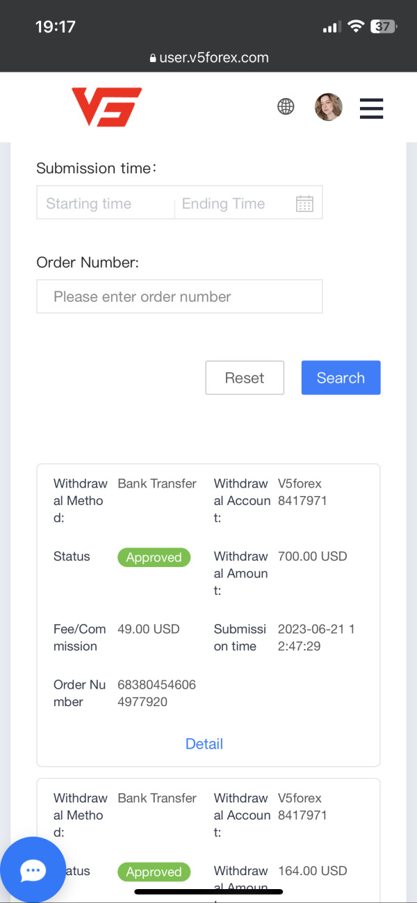 Hi im a trader of v5 forex global my accnt #8417971 i Withdraw last may 29.2023 164$ i can’t receive and june 21, 700$ i withdraw my funds because they gave us a wrong singnal I hope V5 will do action of this.
