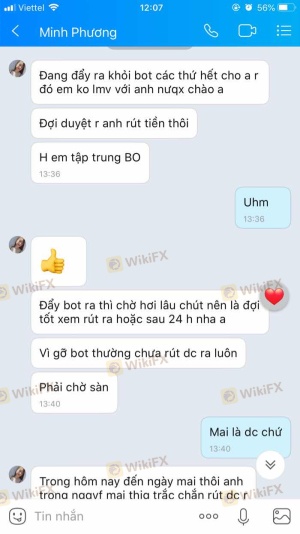 Mình có quyen 1 bạn tên zalo là Minh Phương (MP). Bạn ấy sau 1 thời gian cho minh vào nhóm tín hiệu và rủ mình vào sàn Cjc. Minh đã tham gia sàn và nạp 1k. Bạn ấy có giới thiệu nhóm PAM đánh rất hay, tỷ lệ lợi nhuận hàng ngày cao. Và minh đã tham gia. Bot đánh thua lỗ 20%vốn và xin rút khỏi PAM. Đã đặt lệnh rút tiền rất nhiều lần nhưng ko được. Cuối cùng tất cả tiền bị chuyển về 1 tk không quen biết.MP đã chặn số Da goi nhiu lần cho cjc support nhưng không xử lý Các bạn không nên vào cjc market