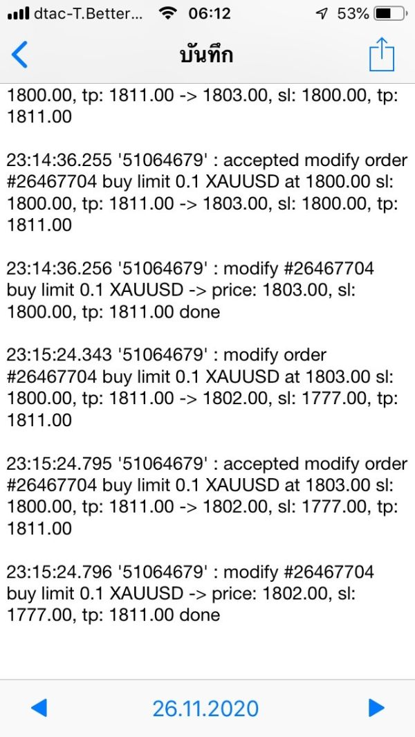 ผมได้ตั้ง order ให้ buylimit ที่ 1800 target ที่ 1811 ตอนกลางคืน พอตื่นมาตอนเช้าประมาณ ตี 5 พบว่าได้มีการ buy เกิดขึ้น จากตามกราฟ พอตลาดเปิดตอน 6โมงเช้า พบว่าออเดอร์บ buy ได้หายไป และไม่มีหลักฐานอะไรขึ้นเลย โบรกเกอร์ pepperstone ลบออเดอร์ไปอย่างเงียบๆ หากไม่ตื่นมาตอน ตี5 ก็จะไม่รู้เลยว่ามีการ buy เกิดขึ้นสอบทางไปทาง pepperstone อ้างว่ากราฟมีปัญหา หากใครที่ ตั้ง stop loss แล้วโดยกินเงิน มาบอกกันนะครับหากจะใช้โบรกเกอร์ pepperstone ก็ระวังดีๆนะครับ โกงกันแบบเห็นๆ