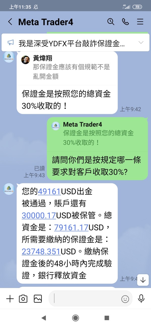 YDFX是詐騙,只要出金大筆金額,就要繳保證金,要小心~