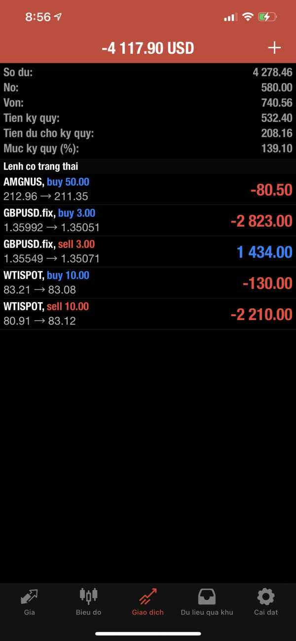Lần đầu tôi nạp 1000, hướng dẫn tôi đi lệnh WTISPOT 10.0, làm âm tài khoản. sau đó bảo tôi vào thêm vốn để gỡ âm, tôi vào thêm 1000. Vào vốn thứ 6, đêns thứ 3 lại âm tài khoản, lại bảo tôi vào thêm 2000 mới gỡ âm được.