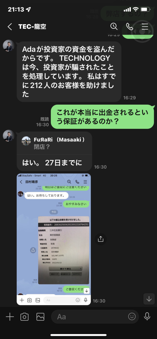 technology上級管理者だという、TEC-龍空からのメッセージが