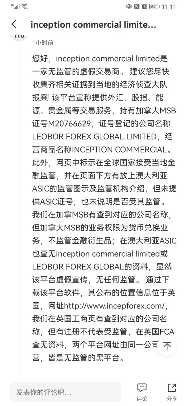 该用户未证明是inception commercial limited的交易者