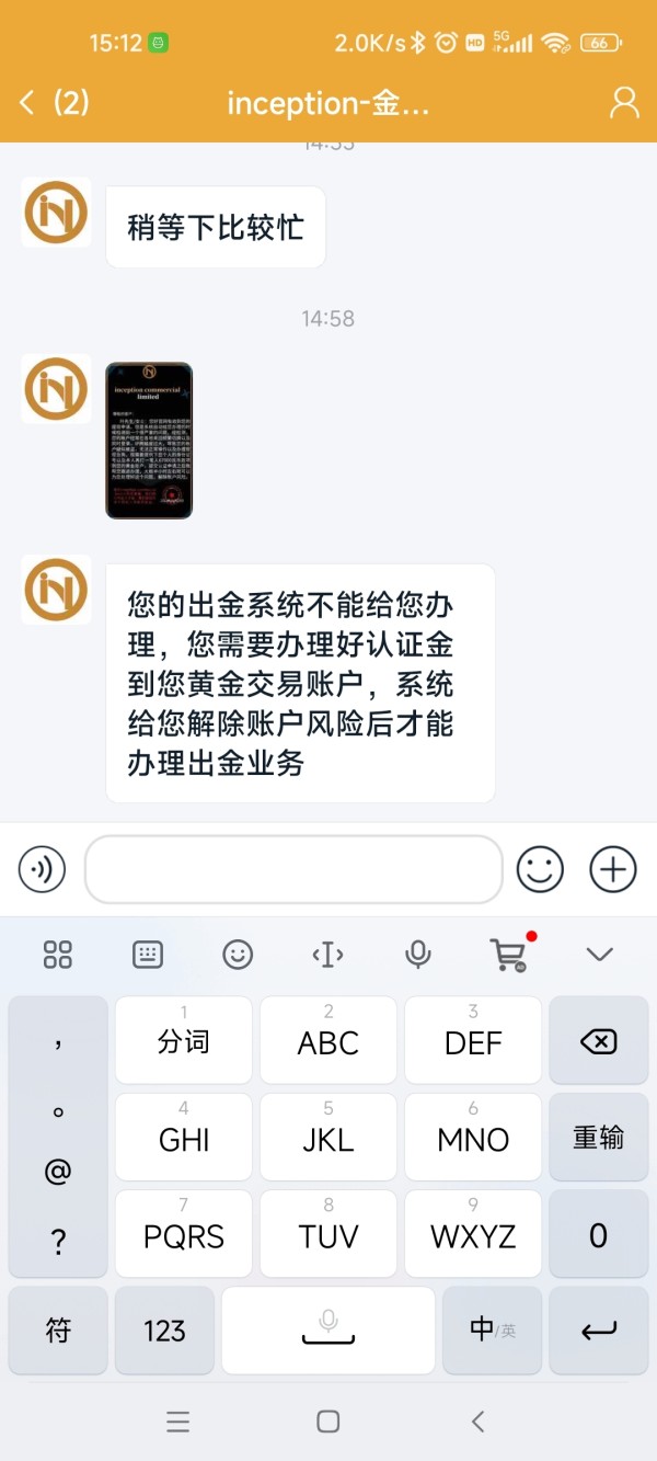 该用户未证明是inception commercial limited的交易者