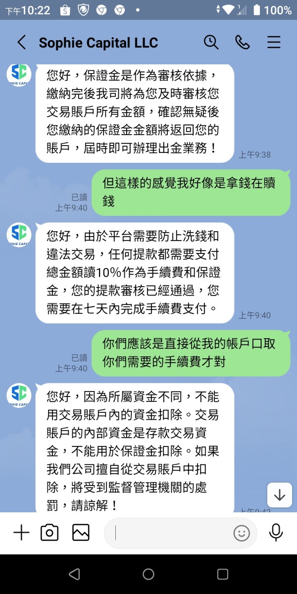 该用户未证明是SOPHIE CAPITAL FINANCIAL TRADING PTY LTD的交易者