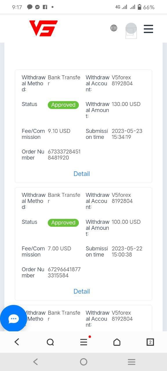 Last week we have widraw 130$ on our account and as per V5 management need 3 days working to receive but still now didn't receive the amount and my account being freeze and change password my account by V5 without proper and profound prof of violation.