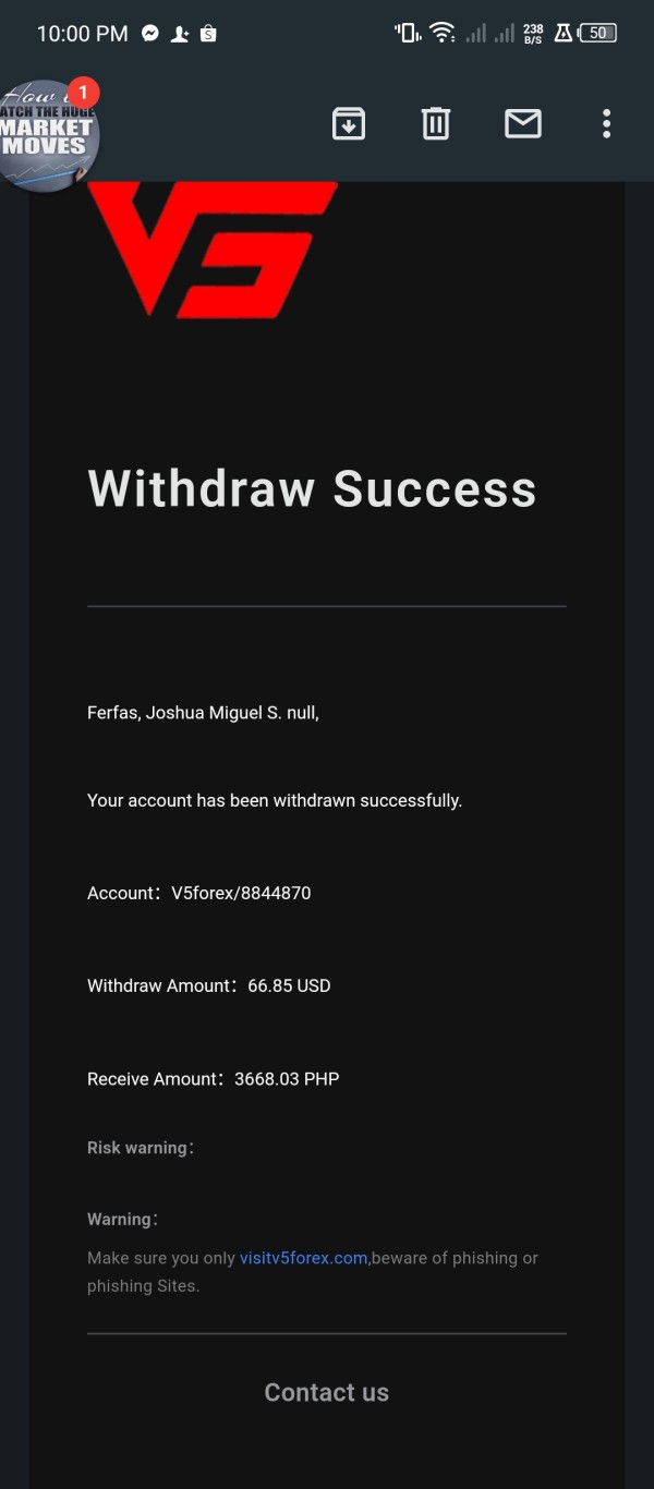 该用户未证明是V5 Forex Global的交易者
