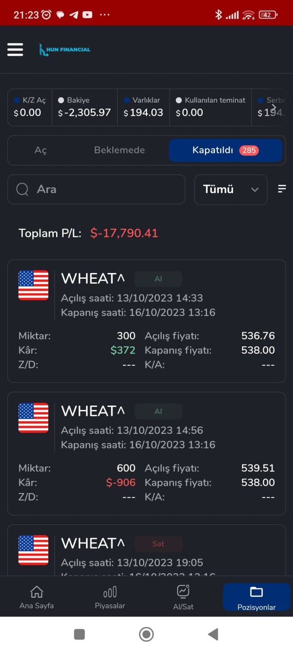 Benim 17.000 dolar öz sermayem ve 14.000 dolar karım olmak üzere toplam 31.000 dolar paramı aldı. Uzman diye adlandırılan a*****'yı tayin ettiler. Portföy sözleşmesi imzaladım ve bütün yatırımları a** yapacaktı, böylece kurumun güvencesinde olacaktım. Komisyon vermeyi kabul ettim. A**, izinsiz ters işlem açarak tüm paramı yok etti. Sonra risk yönetiminde a**** adında biri çıktı ve bana 'para gönder, düzeltiyorum' dedi. Sözde gönderdiğim parayı geri iade edecekti, ancak o da gitti. Şimdi bana yine para göndermemi ve düzeltmeyi söylüyor. Şirket de buna göz yumuyor. Hukuki süreci başlatacağım.
