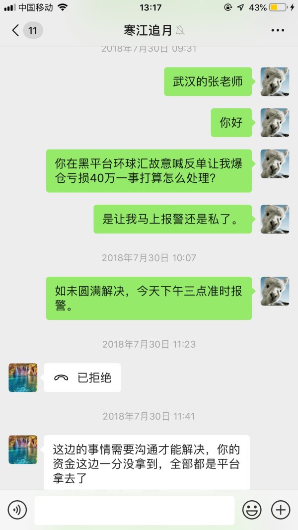 所谓带单老师诱骗至环球汇开户交易,40万全部亏损