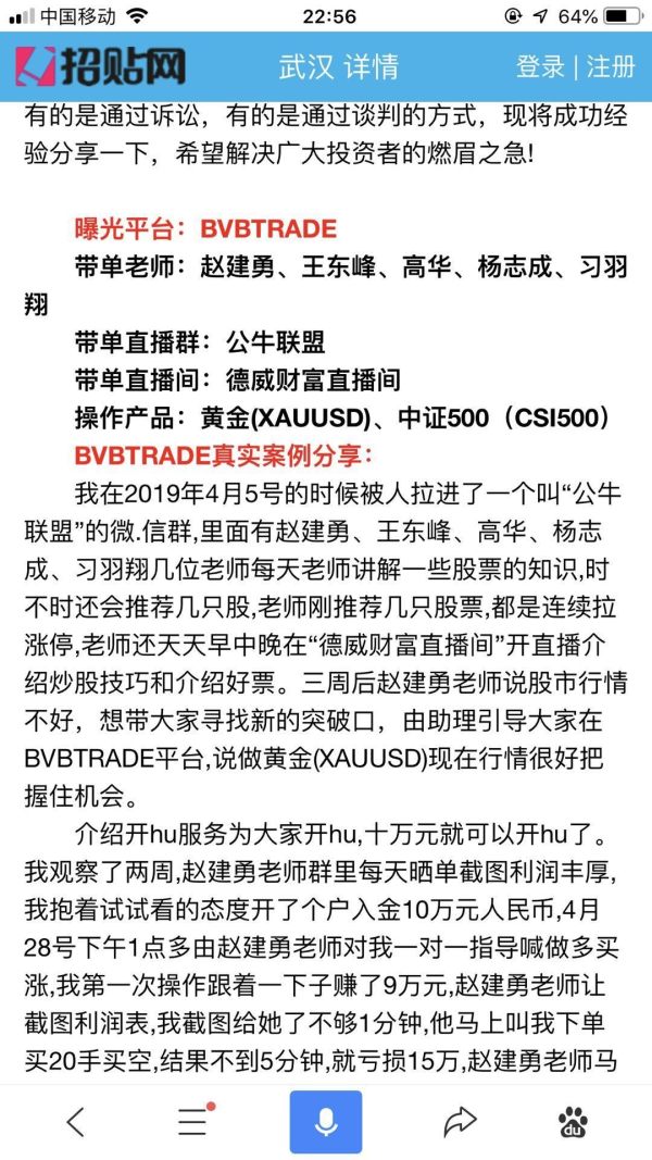 德威财富上老师赵建勇用假平台BVB,欺骗客户。