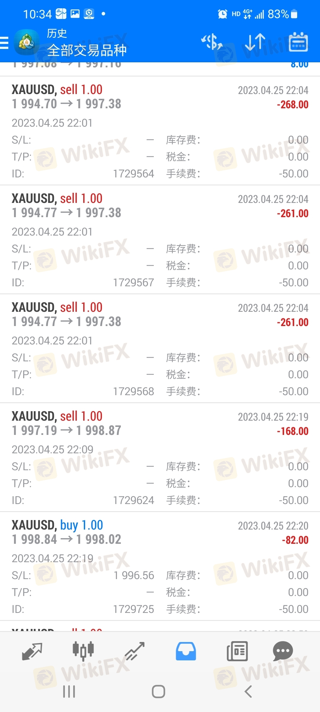 诱惑开户跟单,白天用资金的10%左右正常操作,半夜,把资金全部用上让爆仓。该平台不仅点差大,还收手续费,操作一手手续费50美元。