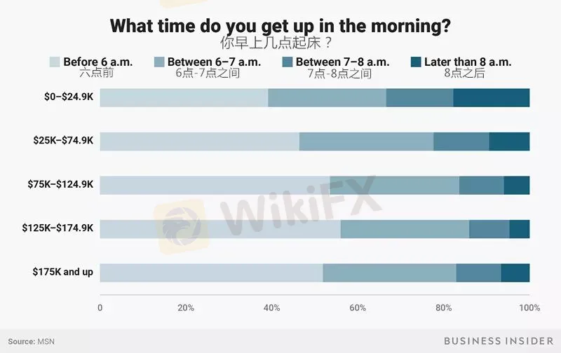 最近,商业内幕联合MSN发布了一则研究结果。发现,在美国不同收入人群的早晨过得不太一样。超级富豪最有可能在早上6点之前醒来,每天早晨进行一次完整的锻炼,并在前一天晚上计划他们第二天的时间表。