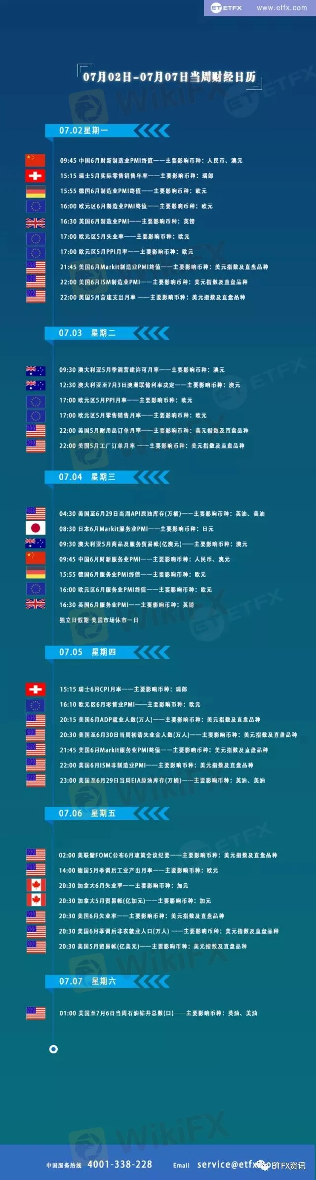 【ETFX财经日历】7月02日-07月07本周重磅数据抢先看