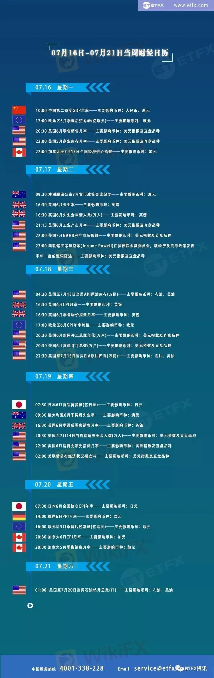 【ETFX财经日历】7月16日-07月21本周重磅数据抢先看